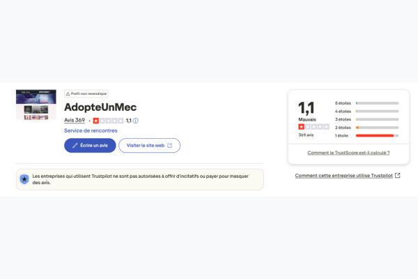 Sur Trustpilot, Adopte reçoit la jolie note de 1,1/5, pour plus de 350 avis.
